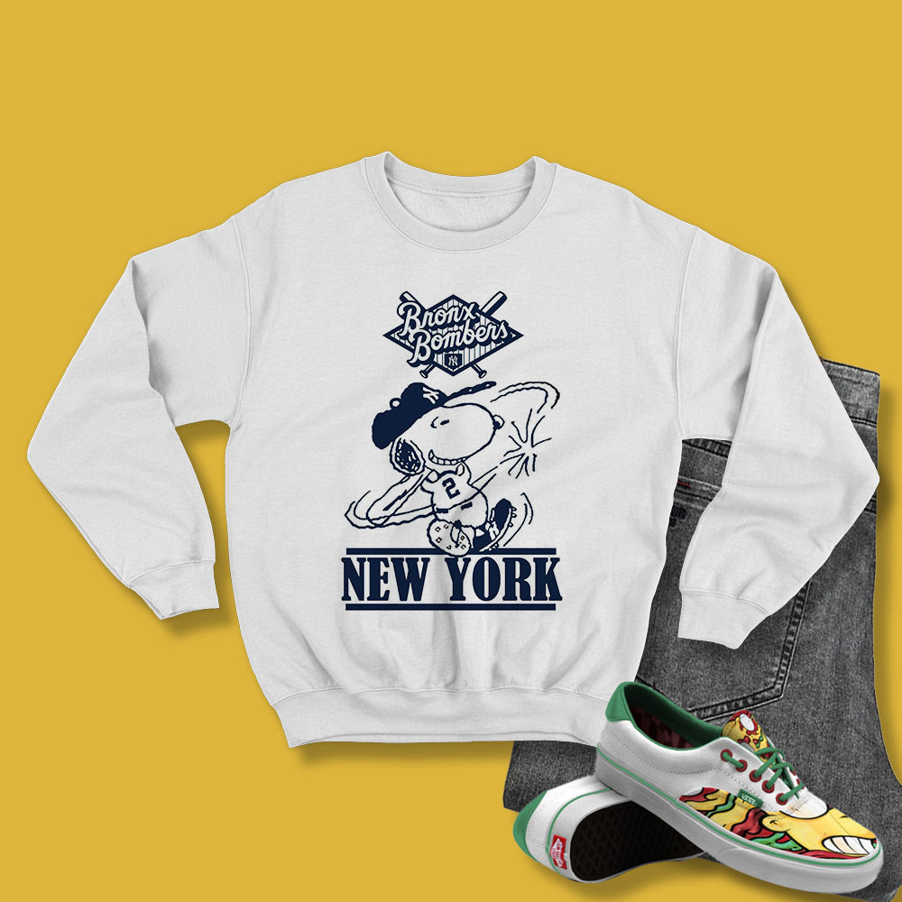 Bronx Bombers Snoopy New York Yankees Snoopy Baseball Sweatshirt heavy cotton tee is the fundamental staple of any wardrobe. It is the inspiration upon which informal style grows. All it desires is a customised layout to raise matters to profitability. The uniqueness spun fibers offer a clean floor for top class printing vividity and sharpness. No aspect seams imply there aren’t anyt any itchy interruptions below the arms. The shoulders have tape for advanced durability.