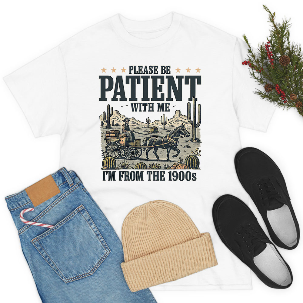 PLEASE BE PATIENT WITH ME I’M FROM THE 1900s T-Shirt – Shop Unique T Shirt Designs in the Wolrd – Unique Mens Shirts | Unique Couple T Shirt Design
