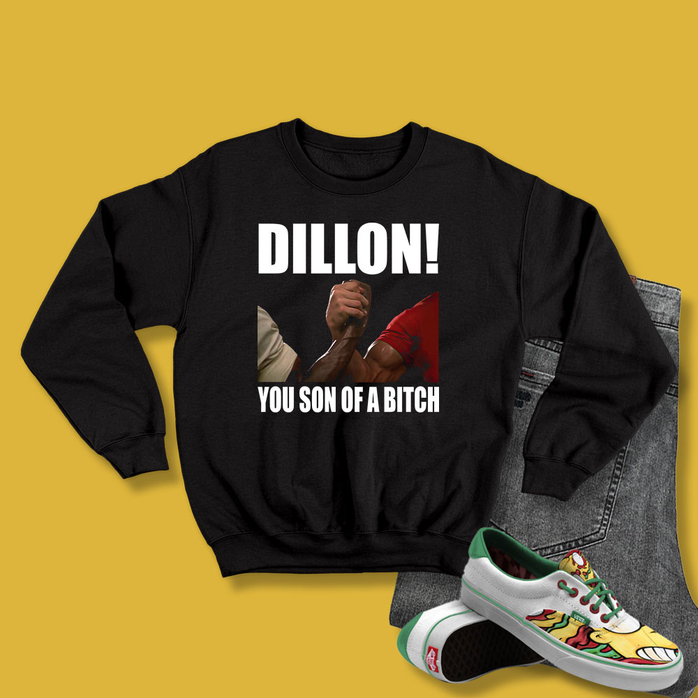 Predator Dillon You Son Of A Bitch Sweatshirt heavy cotton tee is the fundamental staple of any wardrobe. It is the inspiration upon which informal style grows. All it desires is a customised layout to raise matters to profitability. The uniqueness spun fibers offer a clean floor for top class printing vividity and sharpness. No aspect seams imply there aren’t anyt any itchy interruptions below the arms. The shoulders have tape for advanced durability.