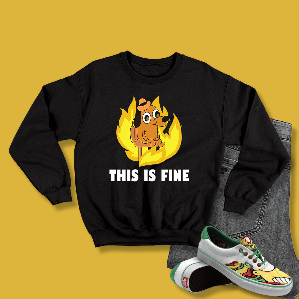 This Is Fine Dog Internet Sweatshirt – Unique Mens Sweatshirt | Unique Couple Sweatshirt Design