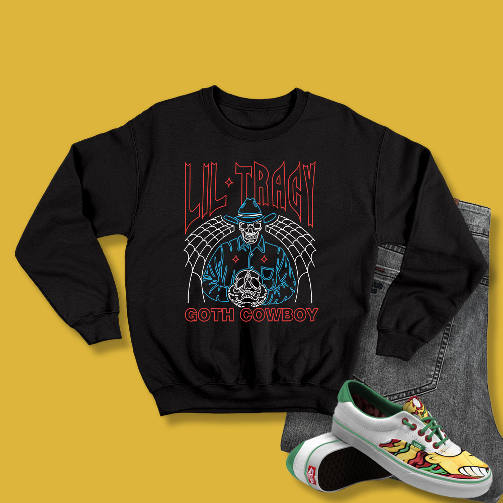 Vintage Lil Tracy Goth Cowboy Sweatshirt heavy cotton tee is the fundamental staple of any wardrobe. It is the inspiration upon which informal style grows. All it desires is a customised layout to raise matters to profitability. The uniqueness spun fibers offer a clean floor for top class printing vividity and sharpness. No aspect seams imply there aren’t anyt any itchy interruptions below the arms. The shoulders have tape for advanced durability.